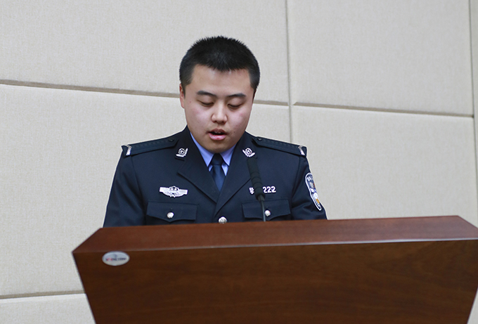 (山东省公务员局副局长于顺水宣读公安英烈子女录用决定)