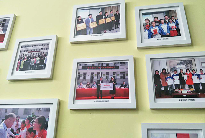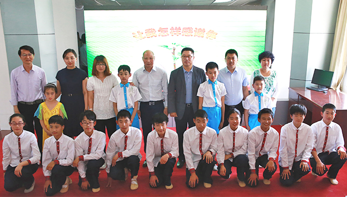 (金天国际护基金成员与受助孩子合影)