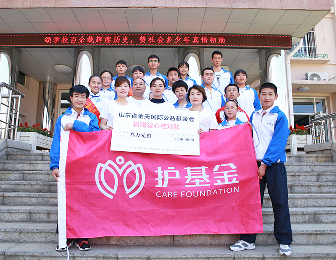 (金天国际护基金副理事长吴倩向烟台特殊教育学校捐赠善款)