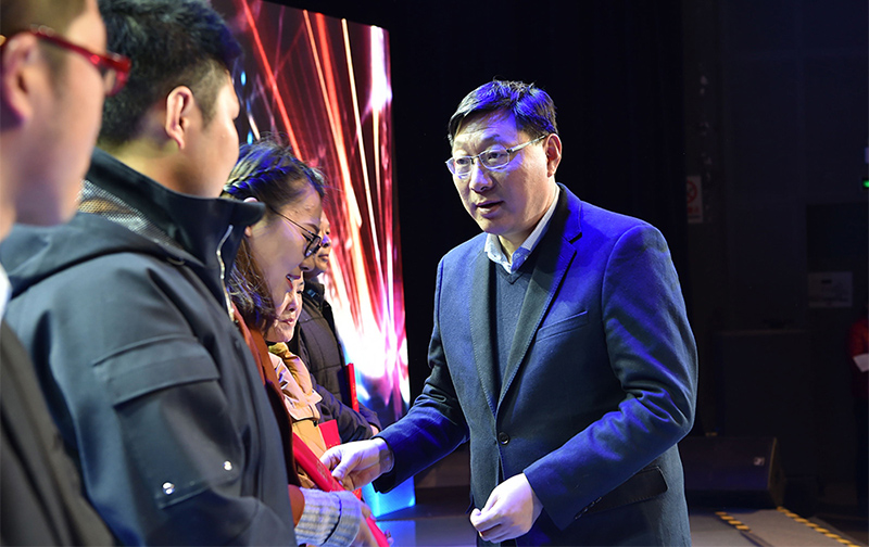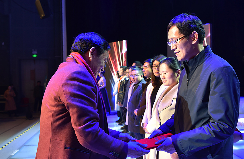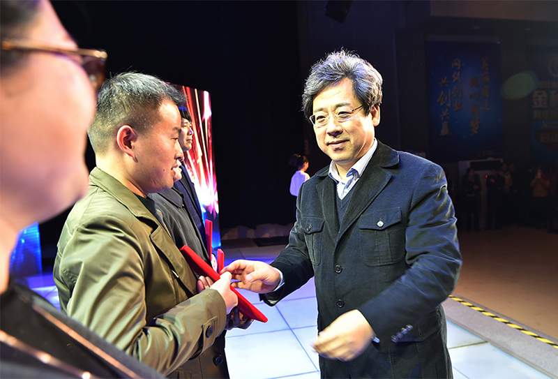 (金天国际董事局主席祖明军为作品获奖者颁奖)